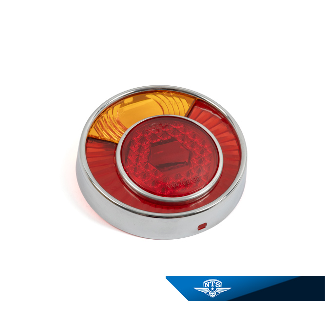 Nyframtaget baklyktsglas inklusive kromsarg för Crescent Jet-linjen, Topper, SM50, tidiga E-typ, compact special samt Skoterette.
