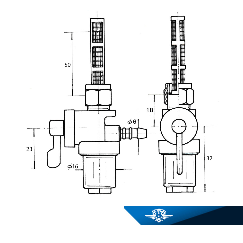 Bensinkranen har gänganslutning M12x1 och slanganslutning Ø = 6 mm och är kompatibel med ett brett urval av mopeder och äldre lättmotorcyklar med förgasare.