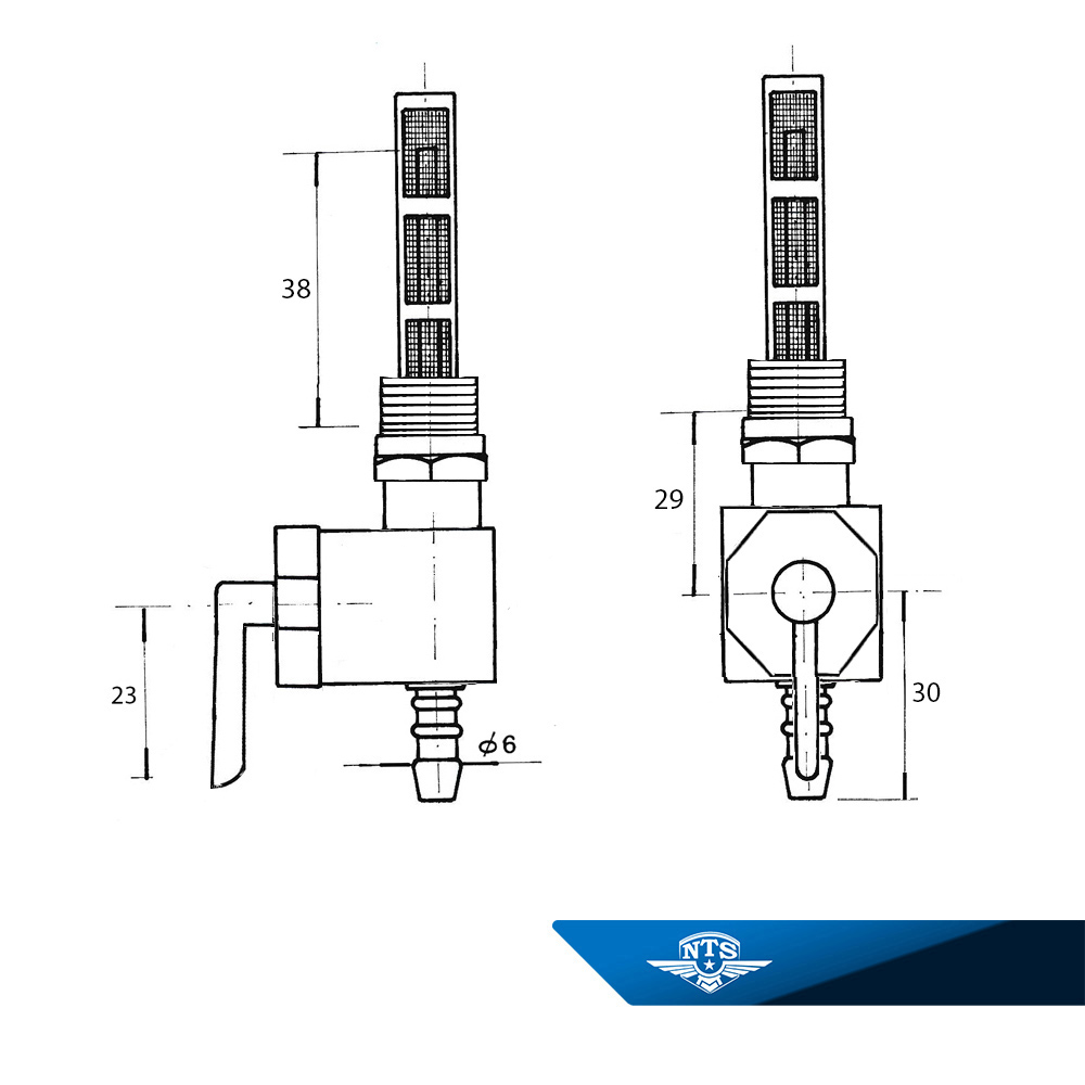 Bensinkranen har M14x1,5mm utvändig gänganslutning och slanganslutning Ø = 6 mm och är kompatibel med ett brett urval av mopeder och äldre lättmotorcyklar med förgasare.