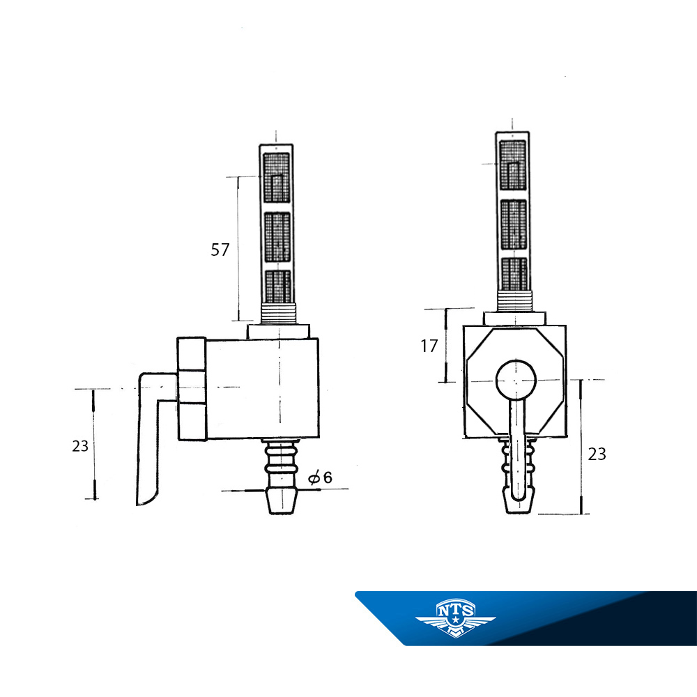 Bensinkranen har UNC 1/8″ utvändig gänganslutning och slanganslutning Ø = 6 mm och är kompatibel med ett urval av mopeder och äldre lättmotorcyklar med förgasare.